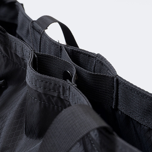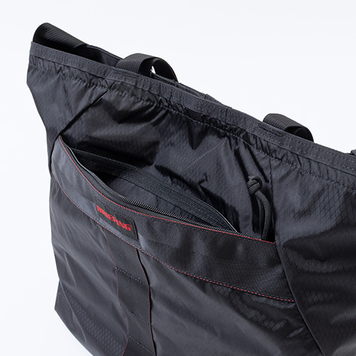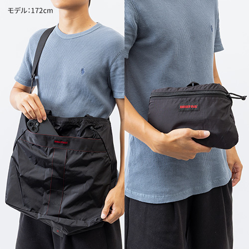 ●使わないときは小さく収納でき、サブバッグとして持ち運ぶのにも便利。旅先で増えた荷物もたっぷり収納OKなマチ幅をしっかりとったメイン収納部。その日の装いやシーンに応じて肩掛け・斜め掛けと使い分けができる2WAY仕様。大きく開く開口部で、嵩張る荷物の出し入れもスムーズに。開口部に設けられたドローコードを絞ることで、中に入れた荷物が外から見えない仕様に。