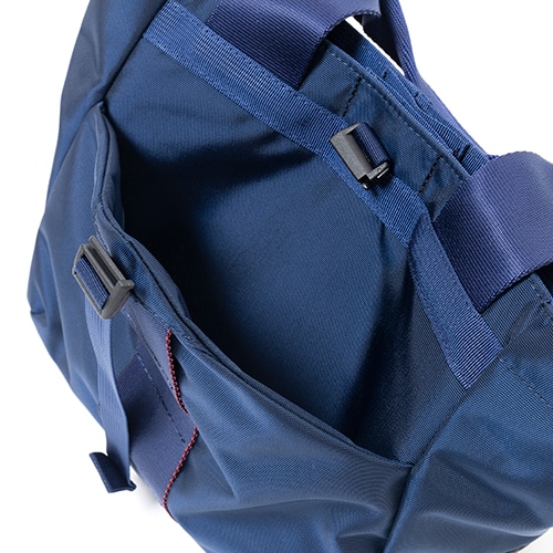 ●小ぶりなサイジングながら、前後のアウトポケットや内装ポケットなどを配し、ジム内等での身の回りのアイテムを持ち運ぶのに便利。