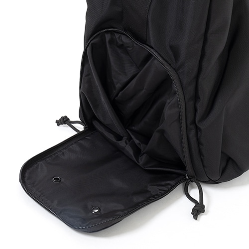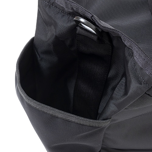 ●メイン収納部と完全セパレートした筒形ポケットをサイドに完備。シューズなどを入れるほか汚れたウエアや小旅行での着替えなど、通常の荷物と分けて入れたいものを収納するのに便利。