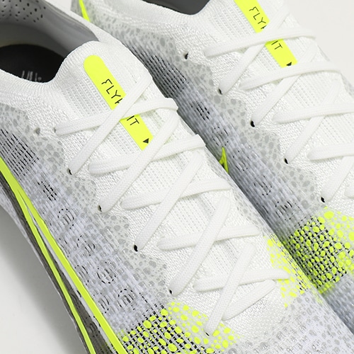 ●必要最低限の要素で構成された新しいFlyknitアッパー。使用する素材を選び抜き、必要なものだけを残して軽量化を実現。粘着性のある軽量のメッシュ素材を使用し、高速で走りながらも足でボールを捉え、適切なボールタッチができるようサポート。