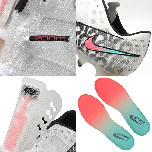 ●軽量でトップクラスの性能を装備した革新的なプリント技術Flyprintアッパー。アスリートのテストで得られたデータに基づき、テキスタイルのアッパーを3Dプリントで作成。さらに中足部のFlywireが適切なホールド性を提供。ショートタンを採用し、Airユニットがフィット感を高める。