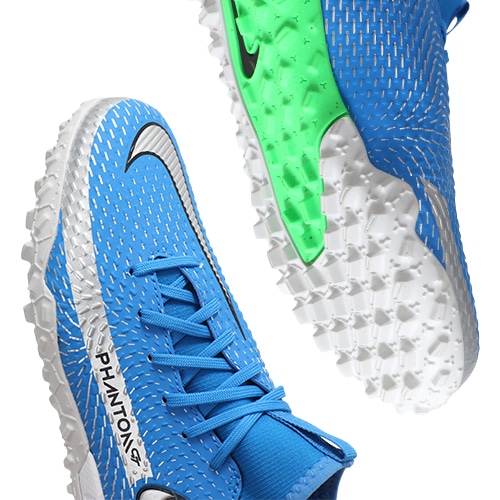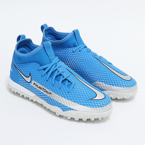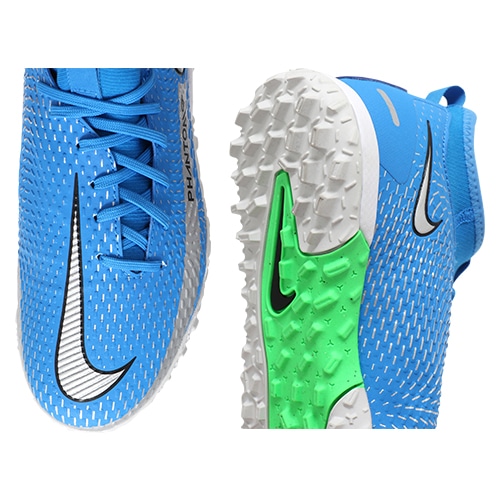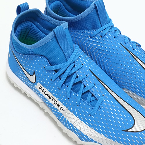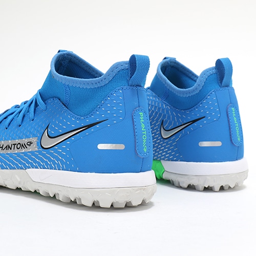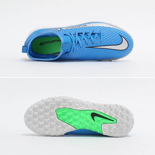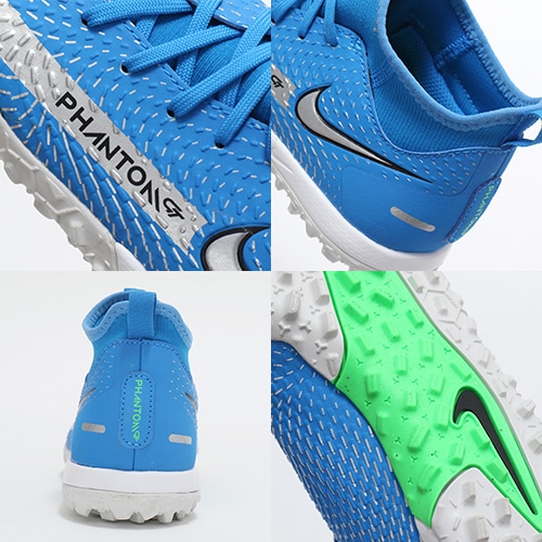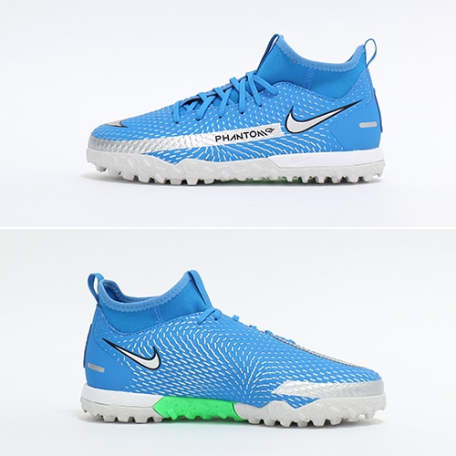 - ナイキの2021春夏の新作コレクション『SPECTRUM(スペクトラム) PACK』、精密さを求めるプレーヤーのために正確なボールタッチとコントロール性を実現したNIKE「PHANTOM GT(ファントム ジーティ)」のハイカット形状ジュニア用TF(ターフコート)対応トレーニングシューズ。