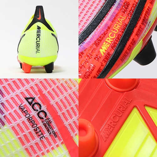 ●雨の日も晴れた日も頼れるタッチを実現する、全天候対応のオール・コンディションズ・コントロール(ACC)を採用。NikeGripテクノロジーを取り入れたインソールが、試合がヒートアップしたときに足が滑るのを防止します。