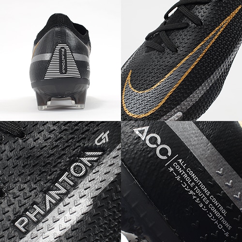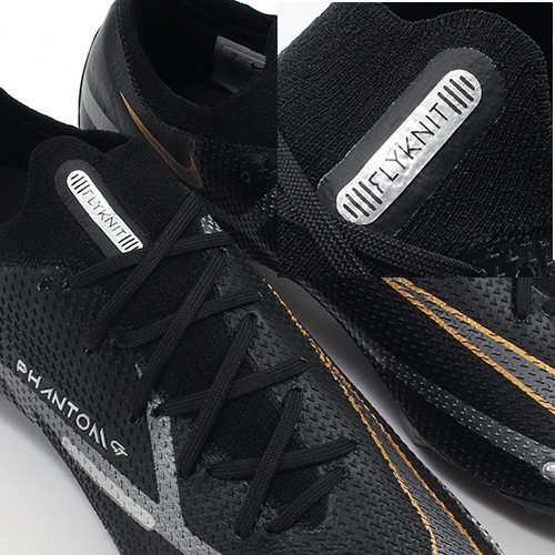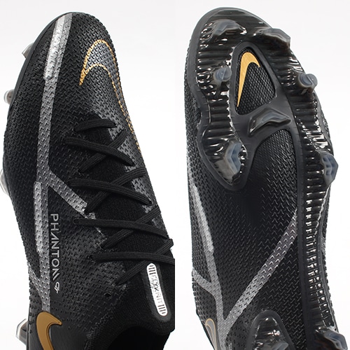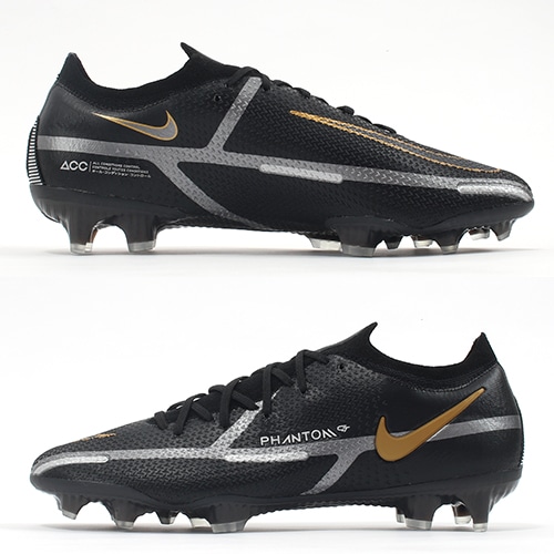 - 2022年春の新作コレクション『BLACK(ブラック) PACK』が登場。精密さを求めるプレーヤーのために正確なボールタッチとコントロール性を実現し、デザインをアップデートしたNIKE「PHANTOM GT(ファントム ジーティ) 2」のELITE(エリート)/ステートメントモデルFG(ファームグラウンド)対応スパイク。