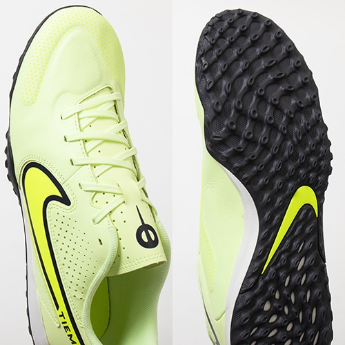 - 過去最軽量になったNIKE唯一のレザーシリーズ「TIEMPO LEGEND(ティエンポ レジェンド) 9」のACADEMY(アカデミー)/コアモデルTF(ターフコート)対応トレーニングシューズ。