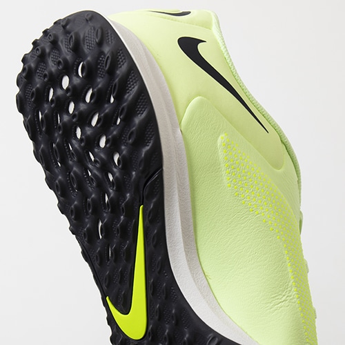 ●ナイキスポーツリサーチラボがプレーヤーの動きを分析。その結果に基づいてデザインされたラバーアウトソールが、人工芝で多方向のトラクションを発揮。
