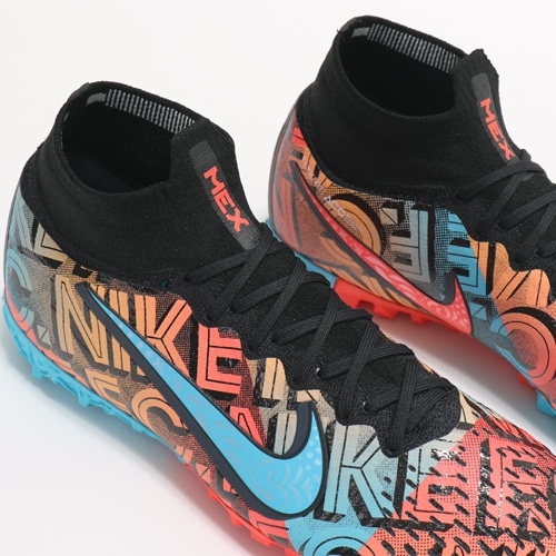 - メキシコシティの華やかなサッカー文化をイメージした「NIKE F.C.(ナイキ エフシー)」コレクションの「MERCURIAL(マーキュリアル)」シリーズ、TF(ターフコート)対応ハイカットステートメントモデルトレーニングシューズ。