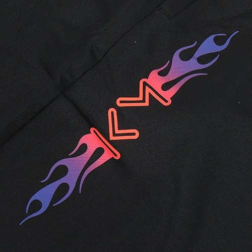速乾性に優れた素材が涼しい着心地をキープ。炎をイメージしたグラフィックで、スピード感あふれるスタイルを演出。