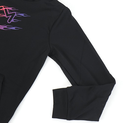 速乾性に優れた素材が、ヒートアップしても涼しい着心地をキープ。炎をイメージしたグラフィックで、スピード感あふれるスタイルを演出。