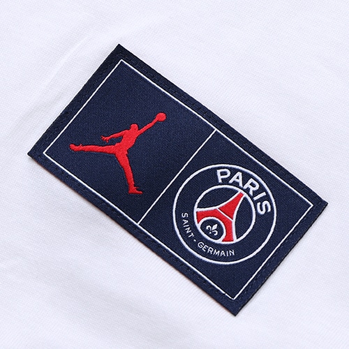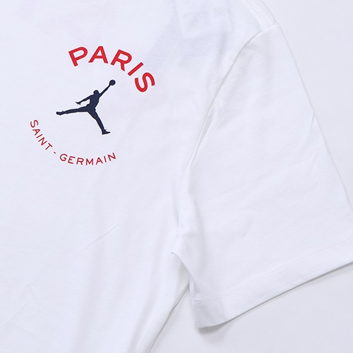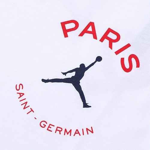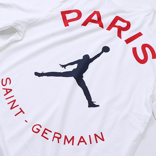 - ナイキ「 PSG × JORDAN 」のアパレルコレクション。PSG × JORDAN のロゴTシャツ。ジョーダンブランドのロゴTシャツで、パリ・サンジェルマンのプライドをアピール。柔らかい軽量コットン素材を使用。大きめの背面グラフィックをあしらい、一部のバージョンにはクラブのホームキットをイメージしたカラーを使用。