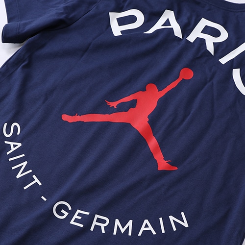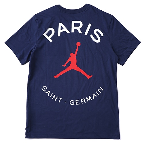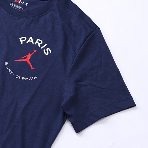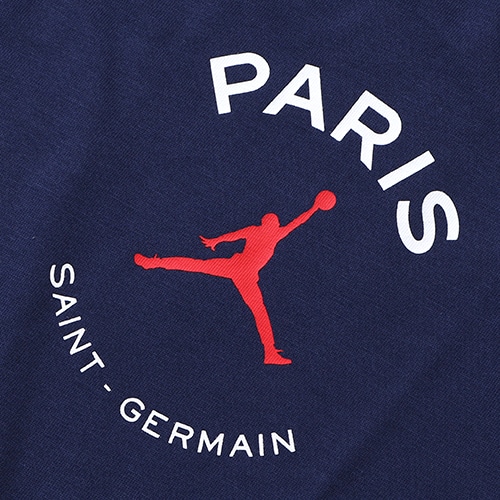 - ナイキ「 PSG × JORDAN 」のアパレルコレクション。PSG × JORDAN ロゴ Tシャツ。ジョーダンブランドのロゴTシャツで、パリ・サンジェルマンのプライドをアピール。柔らかい軽量コットン素材を使用。大きめの背面グラフィックをあしらい、一部のバージョンにはクラブのホームキットをイメージしたカラーを使用。