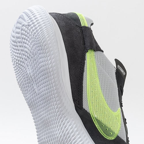 ●スエードのアッパーが、ストリートでプレーするときもカジュアルなシーンでも着用できる、日常的なスタイルを演出します。