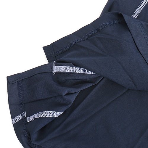 通気性に優れた軽量素材で包み込まれるような着心地。ウォームアップからクールダウンまで、熱のこもりやすい部分をさらりと涼しい状態にキープします。 リサイクルポリエステル繊維を75%以上使用したストレッチ素材。タイトなフィット感で、重ね着もしやすいスタイルです。