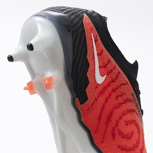 ●かかとのデザインを左右非対称の構造にすることで足とスパイクの擦れを抑え、かかとの継ぎ目がアキレス腱に触ることがなく、履き口のFlyknitが足首周りに快適にぴったりフィット。初めて採用されたアスリート向けのヒールカウンターには窪みが付いており、足の安定感やブーツの構造に妥協することなく、足とブーツの一体感と快適さを高めている。