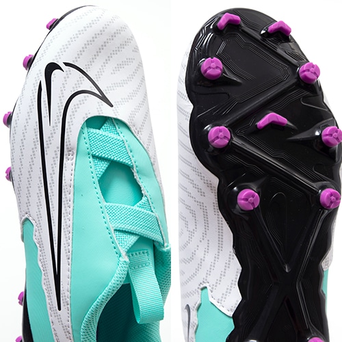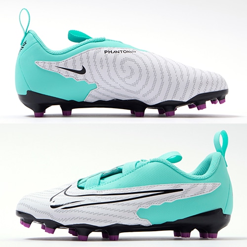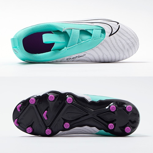 フィールドでクリエイティブにゲームをコントロールするためにボールタッチを強化したNIKE「PHANTOM GX(ファントム ジーエックス)」のACADEMY(アカデミー)/コアモデルFG(ファームグラウンド)/MG(マルチグラウンド)対応ジュニア用スパイク。