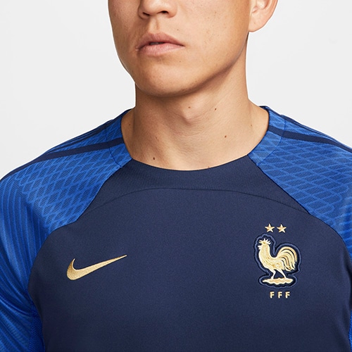 - フランス代表の2022年モデルストライクトップ。Nike Dri-FITテクノロジーが、肌から汗を逃がしてすばやく蒸発させ、さらりと快適な状態をキープ。