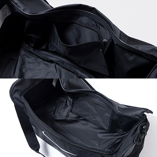 サイドコンパートメントにシューズを分けて収納。内側と外側のポケットは、荷物を整理しておくのに便利です。