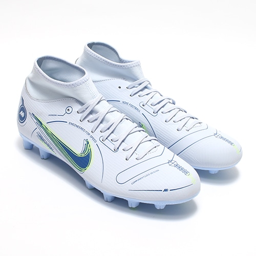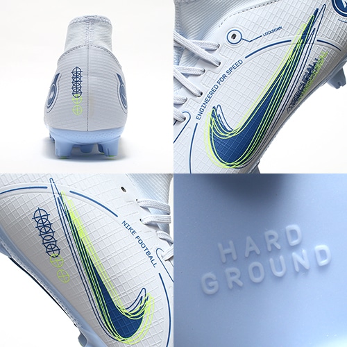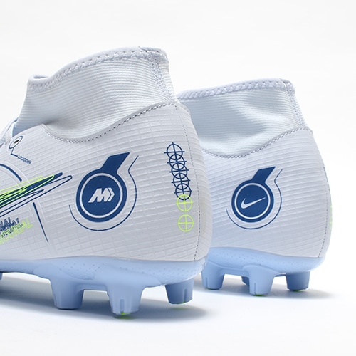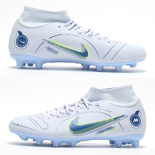 - 2022年夏の新作コレクション『PROGRESS (プログレス) PACK』が登場。アッパーの構成要素を最低限に抑えて軽量化を図り、究極のスピードを追求してデザインアップデートされたNIKE「MERCURIAL(マーキュリアル)」のハイカット形状「SUPERFLY(スーパーフライ) 8」のACADEMY(アカデミー)/コアモデルHG(ハードグラウンド)対応スパイク。
