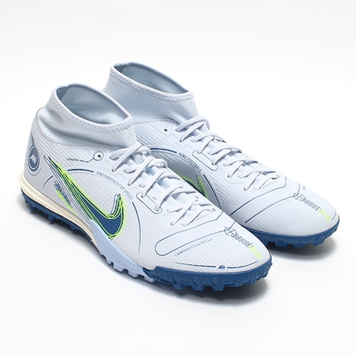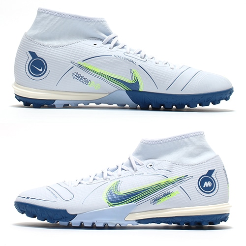 - 2022年夏の新作コレクション『PROGRESS (プログレス) PACK』が登場。アッパーの構成要素を最低限に抑えて軽量化を図り、究極のスピードを追求してデザインアップデートされたNIKE「MERCURIAL(マーキュリアル)」のハイカット形状「SUPERFLY(スーパーフライ) 8」のACADEMY(アカデミー)/コアモデルTF(ターフコート)対応トレーニングシューズ。