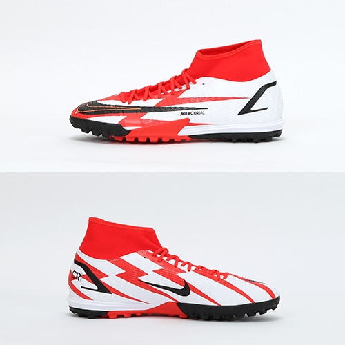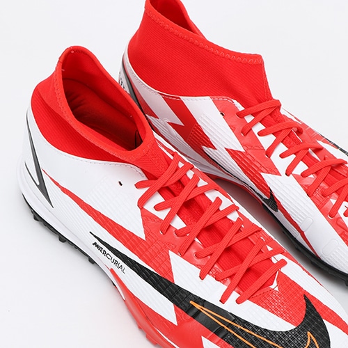 NIKE「MERCURIAL(マーキュリアル)」のハイカット形状「SUPERFLY(スーパーフライ) 8」のACADEMY(アカデミー)/コアモデルTF(ターフコート)対応トレーニングシューズ。