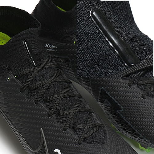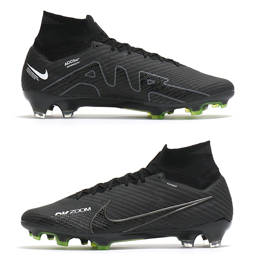- 2022年秋の新作コレクション『SHADOW(シャドウ) PACK』が登場。どのポジション、どの場所からも稲妻のようなスピードでゴールを狙えるサッカースパイク『AIR ZOOM MERCURIAL(エア ズーム マーキュリアル)』のハイカット形状「SUPERFLY(スーパーフライ) 9」のELITE(エリート)/ステートメントモデルFG(ファームグラウンド)対応スパイク。