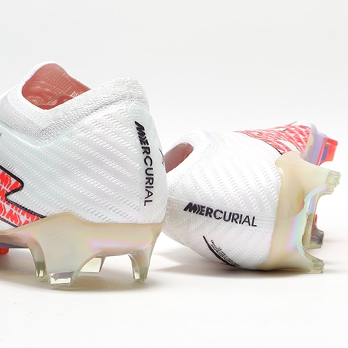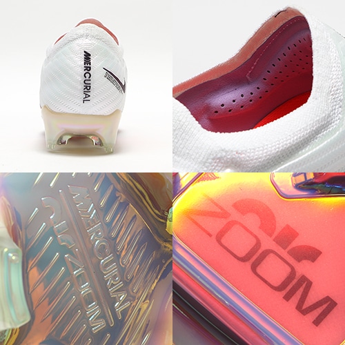 ●Nike史上初めて、サッカー用に作られた3/4レングスの「Zoom Airユニット」をプレートに内蔵。アスリートが着地するたびにファイバーが縮んで衝撃を緩和し、すばやく元の状態に戻るときに爆発的にパワフルな跳ね返りを生成。Airのスピードを実感し、命運を分けるプレーの最中も素早さをキープできる。