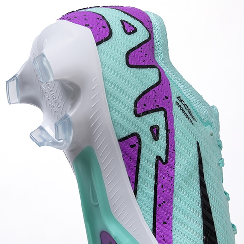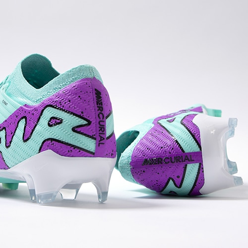 ●Nike史上初めて、サッカー用に作られた3/4レングスの「Zoom Airユニット」をプレートに内蔵。アスリートが着地するたびにファイバーが縮んで衝撃を緩和し、すばやく元の状態に戻るときに爆発的にパワフルな跳ね返りを生成。Airのスピードを実感し、命運を分けるプレーの最中も素早さをキープできる。