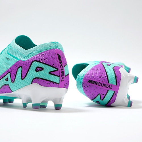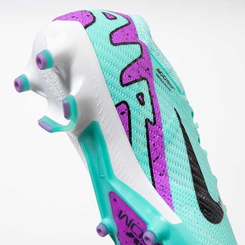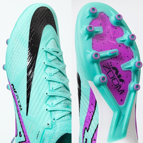 ●Nike史上初めて、サッカー用に作られた3/4レングスの「Zoom Airユニット」をプレートに内蔵。アスリートが着地するたびにファイバーが縮んで衝撃を緩和し、すばやく元の状態に戻るときに爆発的にパワフルな跳ね返りを生成。Airのスピードを実感し、命運を分けるプレーの最中も素早さをキープできる。