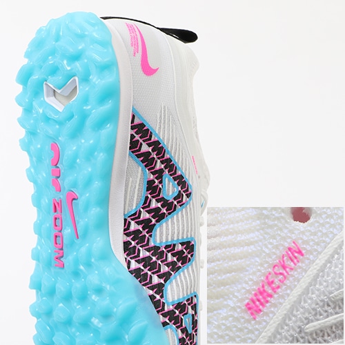 ●アッパーに使用したFlyknit(フライニット)は、スパイクをさらに軽量化して高速のプレーを可能にします。抜群に軽くて丈夫なFlyknitのサイドパネルがサポート性を発揮し、ボールタッチが素足に近い感覚に。