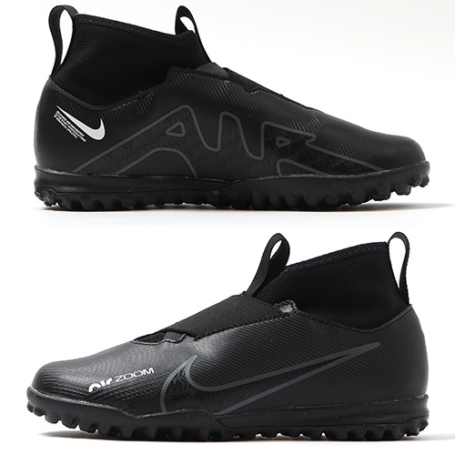 - 2022年秋の新作コレクション『SHADOW(シャドウ) PACK』が登場。どのポジション、どの場所からも稲妻のようなスピードでゴールを狙えるサッカースパイク『AIR ZOOM MERCURIAL(エア ズーム マーキュリアル)』のハイカット形状「SUPERFLY(スーパーフライ) 9」のACADEMY(アカデミー)/コアモデルTF(ターフコート)対応ジュニア用トレーニングシューズ。