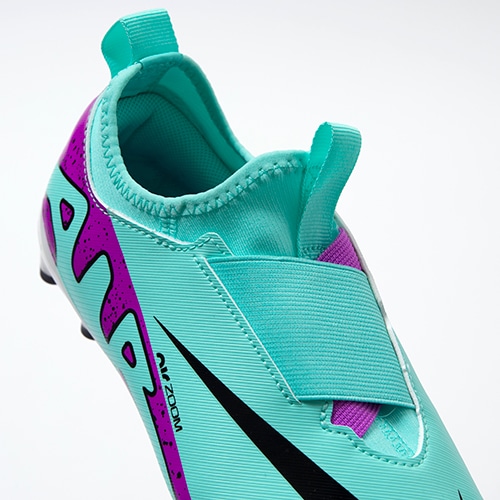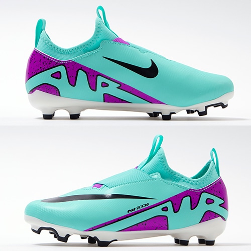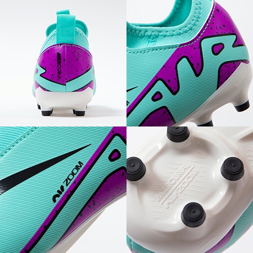 どのポジション、どの場所からも稲妻のようなスピードでゴールを狙える『AIR ZOOM MERCURIAL(エア ズーム マーキュリアル)』のローカット形状「VAPOR(ヴェイパー) 15」のコアモデルFG(ファームグラウンド)/MG(マルチグラウンド)対応ジュニア用スパイク。