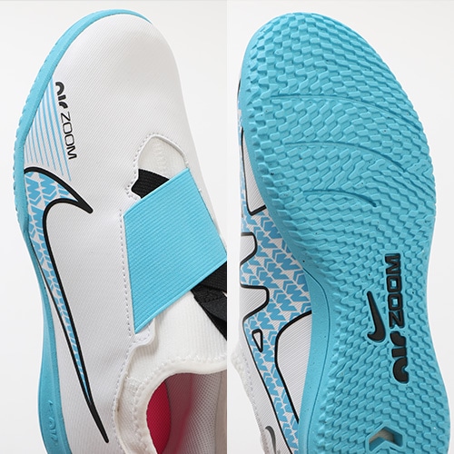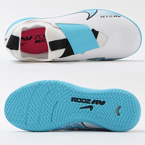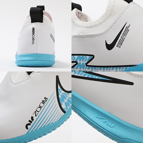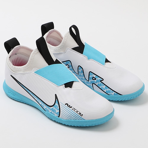 - 2023年春の新作コレクション『BLAST(ブラスト) PACK』が登場。どのポジション、どの場所からも稲妻のようなスピードでゴールを狙える『AIR ZOOM MERCURIAL(エア ズーム マーキュリアル)』のローカット形状「VAPOR(ヴェイパー) 15」のACADEMY(アカデミー)/コアモデルIC(インドアコート)対応ジュニア用トレーニングシューズ。
