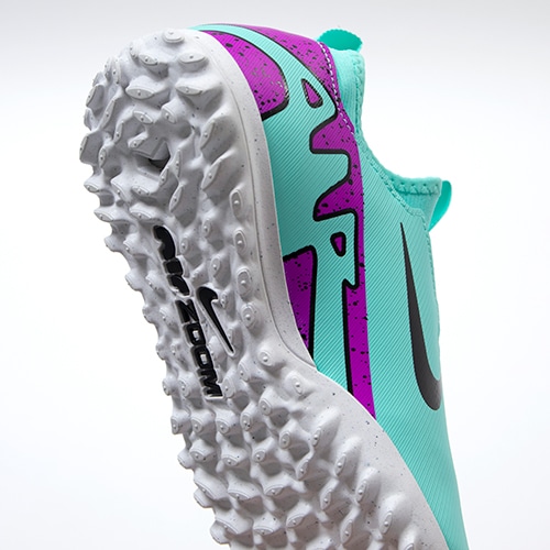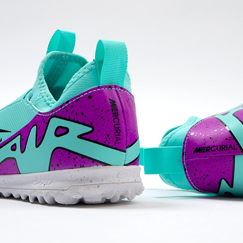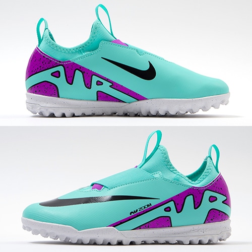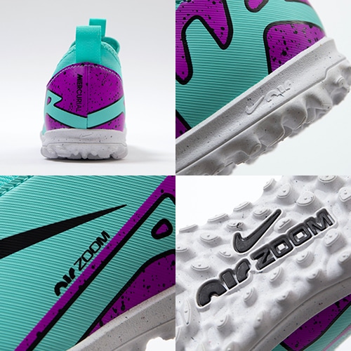 どのポジション、どの場所からも稲妻のようなスピードでゴールを狙える『AIR ZOOM MERCURIAL(エア ズーム マーキュリアル)』のローカット形状「VAPOR(ヴェイパー) 15」のACADEMY(アカデミー)/コアモデルTF(ターフコート)対応ジュニア用トレーニングシューズ。