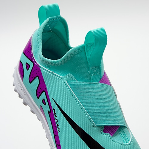 ●プルタブと2本のゴムストラップを組み合わせた着脱しやすいデザイン。シューレースを無くしたことで素早くピッチへ飛び出すことが可能です。