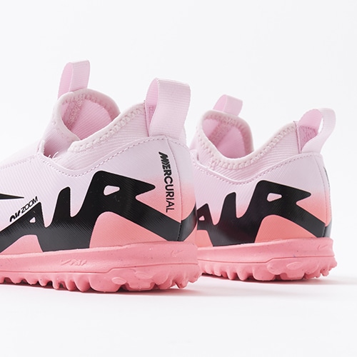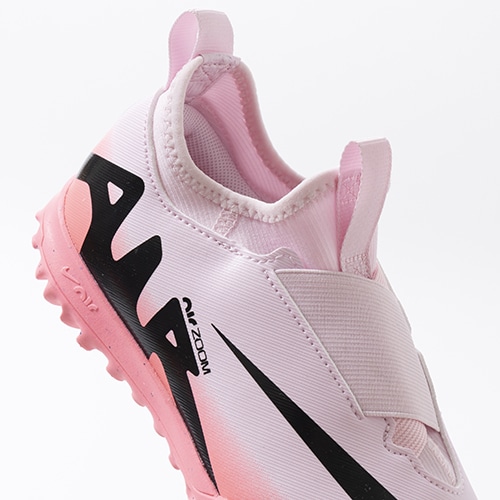 どのポジション、どの場所からも稲妻のようなスピードでゴールを狙える『AIR ZOOM MERCURIAL(エア ズーム マーキュリアル)』のローカット形状「VAPOR(ヴェイパー) 15」のACADEMY(アカデミー)/コアモデルTF(ターフコート)対応ジュニア用トレーニングシューズ。