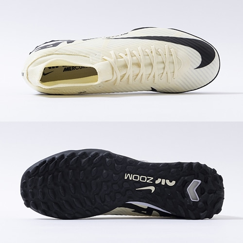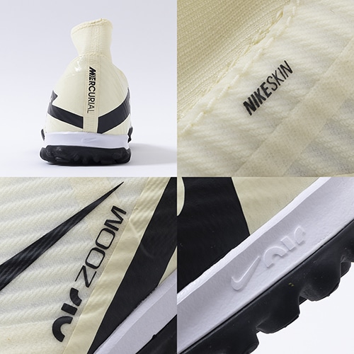 どのポジション、どの場所からも稲妻のようなスピードでゴールを狙える『AIR ZOOM MERCURIAL(エア ズーム マーキュリアル)』のハイカット形状「SUPERFLY(スーパーフライ) 9」のACADEMY(アカデミー)/コアモデルTF(ターフコート)対応トレーニングシューズ。