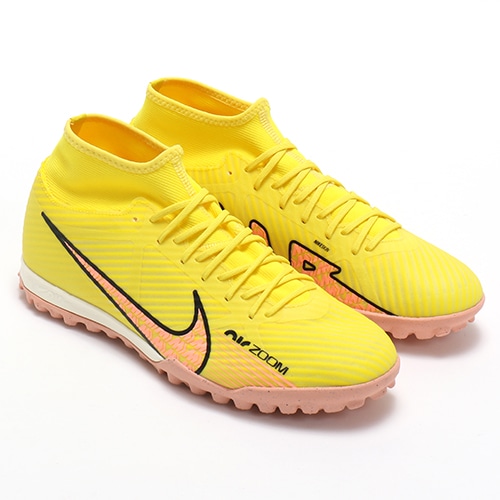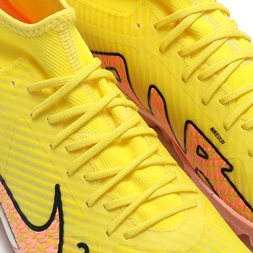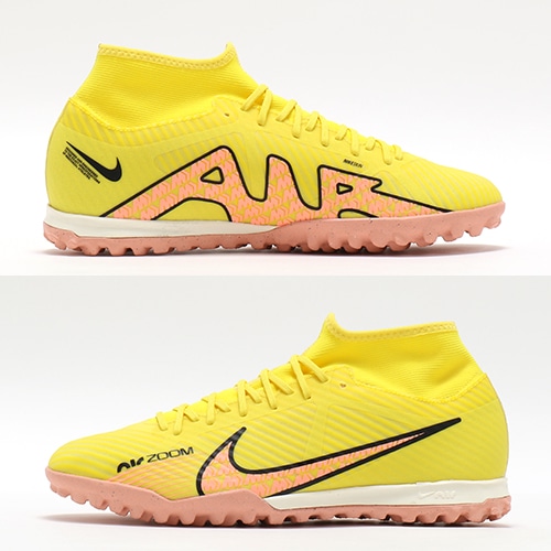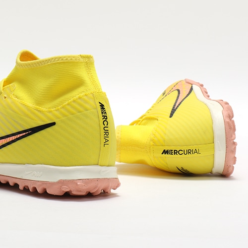 - 2022年秋の2ndコレクション『LUCENT(ルーセント) PACK』が登場。どのポジション、どの場所からも稲妻のようなスピードでゴールを狙えるサッカースパイク『AIR ZOOM MERCURIAL(エア ズーム マーキュリアル)』のハイカット形状「SUPERFLY(スーパーフライ) 9」のACADEMY(アカデミー)/コアモデルTF(ターフコート)対応トレーニングシューズ。