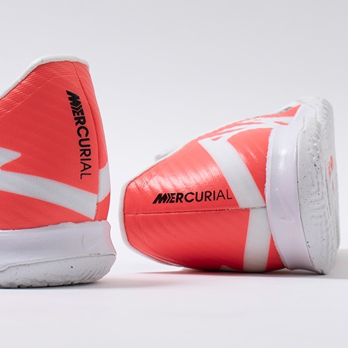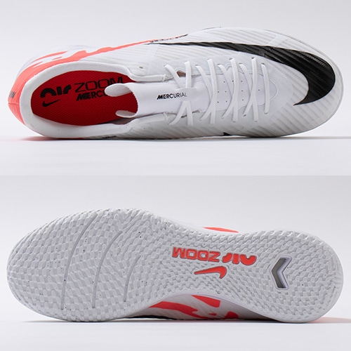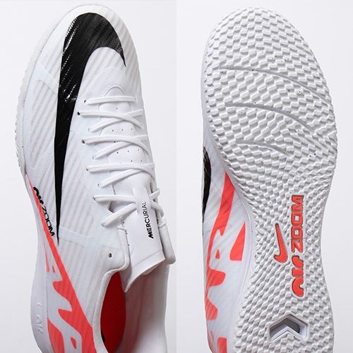 どのポジション、どの場所からも稲妻のようなスピードでゴールを狙える『AIR ZOOM MERCURIAL(エア ズーム マーキュリアル)』のローカット形状「VAPOR(ヴェイパー) 15」のACADEMY(アカデミー)/コアモデルIC(インドアコート)対応トレーニングシューズ。