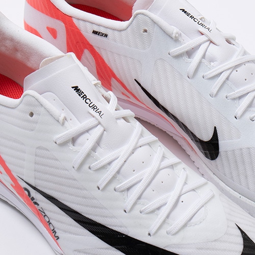 ●アッパーには、柔らかく柔軟性に優れたメッシュ素材に薄いコーティングを施したNikeSkinを使用。 素足でサッカーをしているような感覚で、ボールをコントロールできます。