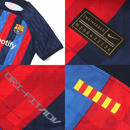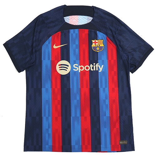 - ラ・リーガ(スペイン)、FCバルセロナの2022-2023シーズンHOMEモデル半袖オーセンティックユニフォーム。通気性に優れたNike Dri-FITテクノロジー素材が、肌から汗を逃してすばやく蒸発。さらりとした快適な着心地をキープ。