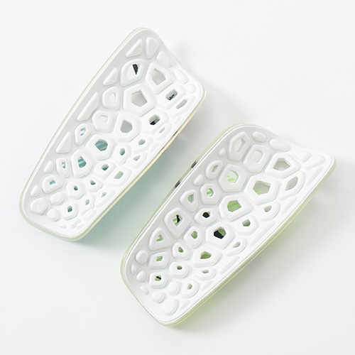 色と心を関連付ける科学的研究にヒントを得て、グリーン、パープル、イエローのグラデーションを配置。クッション性に優れた装着で体にフィット。スピード感のある動きを維持しつつ下腿部を保護。柔らかいフォームと耐久性に優れたシェルを組み合わせた超薄型デザインで、ピッチでの衝撃を拡散。