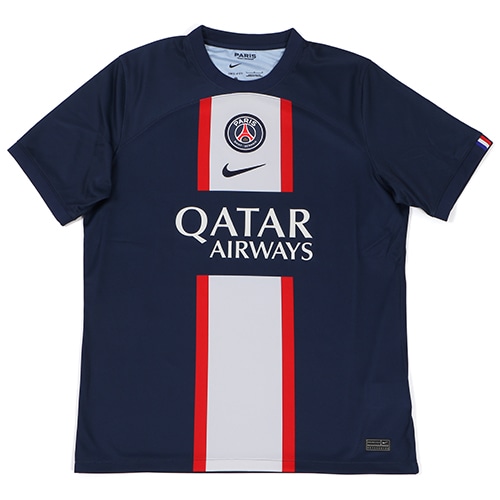 - リーグ・アン、パリ・サンジェルマンの2022-2023シーズンHOMEモデル半袖レプリカユニフォーム。速乾性に優れた素材が、ピッチでもスタンドでもさらりと快適な状態をキープ。