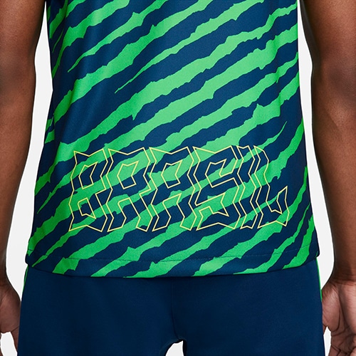 - ブラジル代表の2022年モデルプレマッチトップ。Nike Dri-FITテクノロジーが、肌から汗を逃がしてすばやく蒸発させ、さらりと快適な状態をキープ。