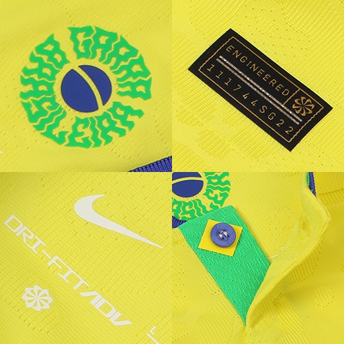 - ブラジル代表の2022年モデルHOMEオーセンティックユニフォーム。Nike Dri-FITテクノロジーが、肌から汗を逃がしてすばやく蒸発させ、さらりと快適な状態をキープ。