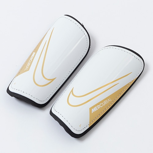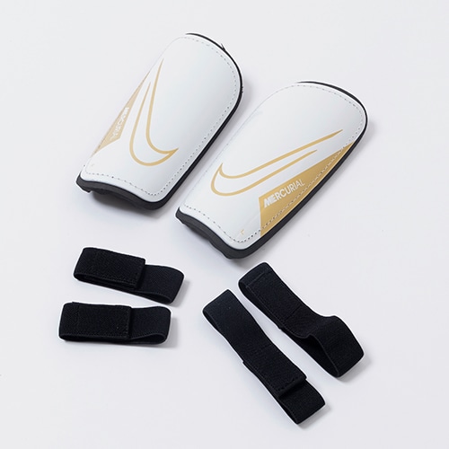 - フットウェアとデザイン連動した、NIKE「MERCURIAL(マーキュリアル)」シリーズの衝撃吸収性を備えた軽量設計のハードシェル シンガード。