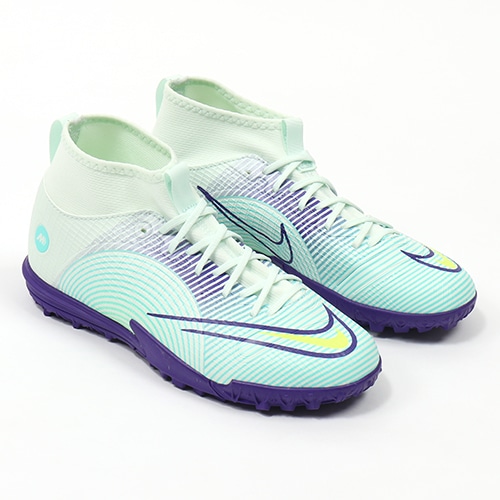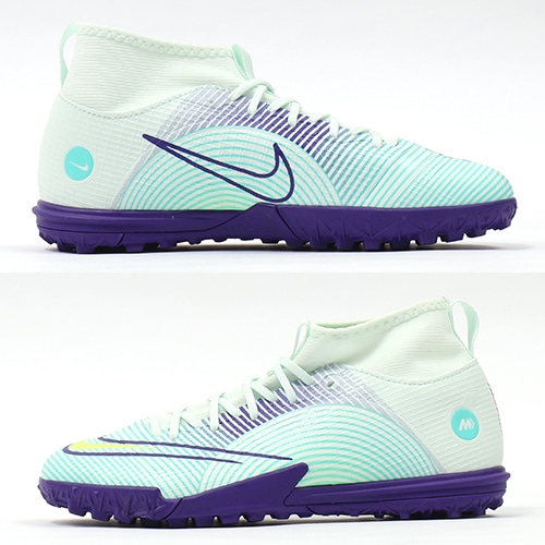 - 限られた特別なプレイヤーだけが着用できるスペシャルコレクション「MERCURIAL DREAM SPEED(マーキュリアル・ドリーム・スピード)」の5thモデルが登場!ハイカット形状「SUPERFLY(スーパーフライ) 8」のジュニア用ACADEMY(アカデミー)/コアモデルTF(ターフコート)対応トレーニングシューズ。