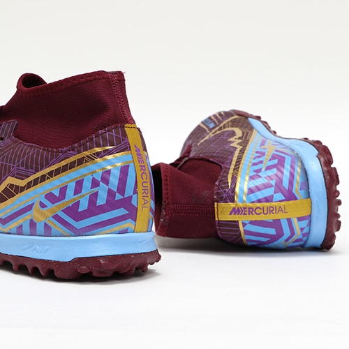 - 2022年秋の新作『Kylian Mbappe(キリアン・エムバペ)』シグネイチャー コレクションが登場。どのポジション、どの場所からも稲妻のようなスピードでゴールを狙えるサッカースパイク『AIR ZOOM MERCURIAL(エア ズーム マーキュリアル)』のハイカット形状「SUPERFLY(スーパーフライ) 9」のACADEMY(アカデミー)/コアモデルTF(ターフコート)対応トレーニングシューズ。