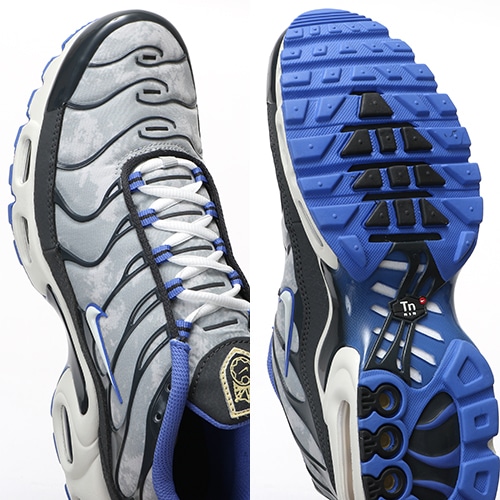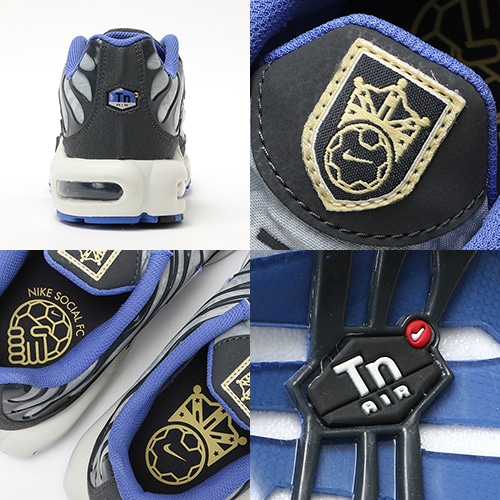 - サッカーをイメージした斬新なデザインで、ピッチへの情熱を祝福するNIKE『SOCIAL FC』のエア マックス プラス。デジタルプリント、王冠のついたボールのロゴ、などの目に飛び込むビジュアルが、あらゆるシーンでサッカースタイルを演出します。