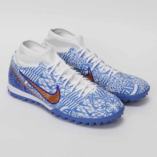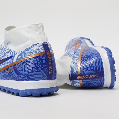 どのポジション、どの場所からも稲妻のようなスピードでゴールを狙えるサッカースパイク『AIR ZOOM MERCURIAL(エア ズーム マーキュリアル)』のハイカット形状「SUPERFLY(スーパーフライ) 9」のACADEMY(アカデミー)/コアモデルTF(ターフコート)対応トレーニングシューズ。