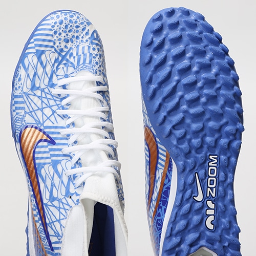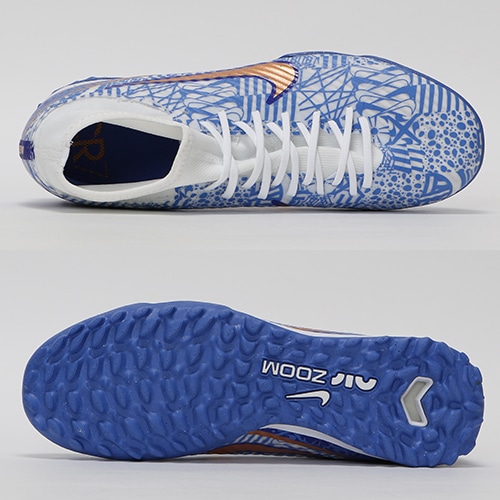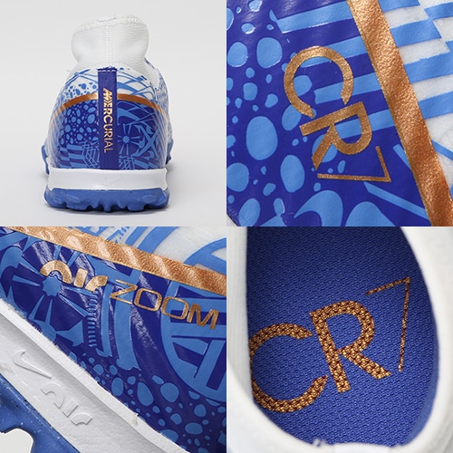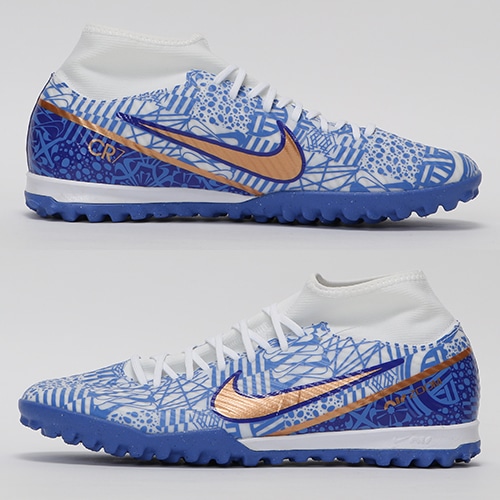 - 2022年冬の新作、クリスティアーノ・ロナウドのシグネイチャーモデル『CR7(シーアールセブン)』コレクションが登場。ポルトガルの街を彩る、美しい装飾タイル「アズレージョ」。 タイルのもつ温かい雰囲気と大洋のイメージからインスピレーションを得て、最速のスパイクをデザインしました。